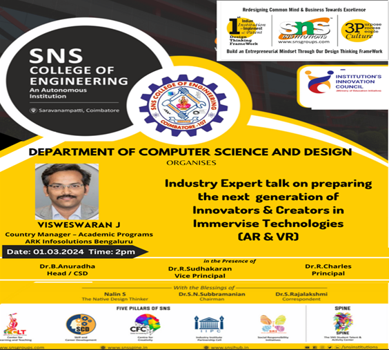 - G.Gobinath,& Govarshini of I CSD got Second place in Arthasasthra-2k25-Mini Project held at SNS COLLEGE OF ENGINEERING on Feb 27th,28th 2024.