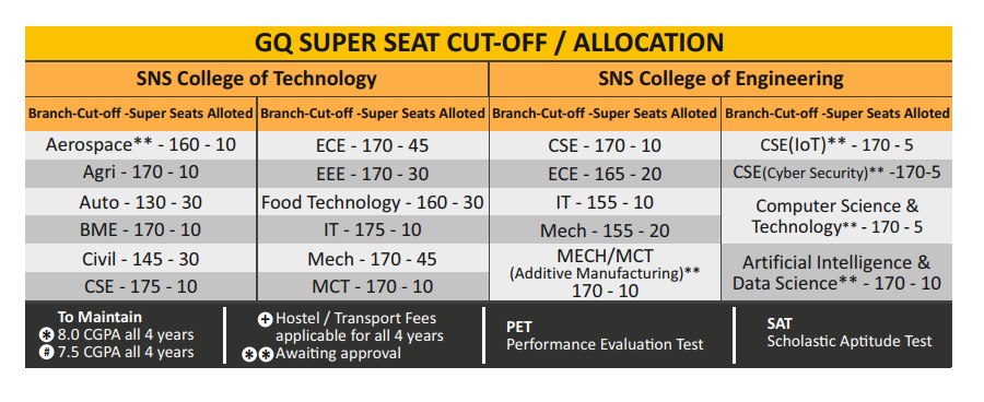 Rs. 10, 000 Scholarship. Sustain your SAT Scholarship for all four years by maintaining 8.0 CGPA.